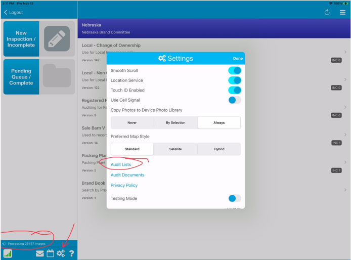 2. Once its downloaded now it starts to update the data. If you are wondering how far along it is or if it got them all, you can check the Audit List which is located in the Settings (Gears). Then click on the Audit LIst option.